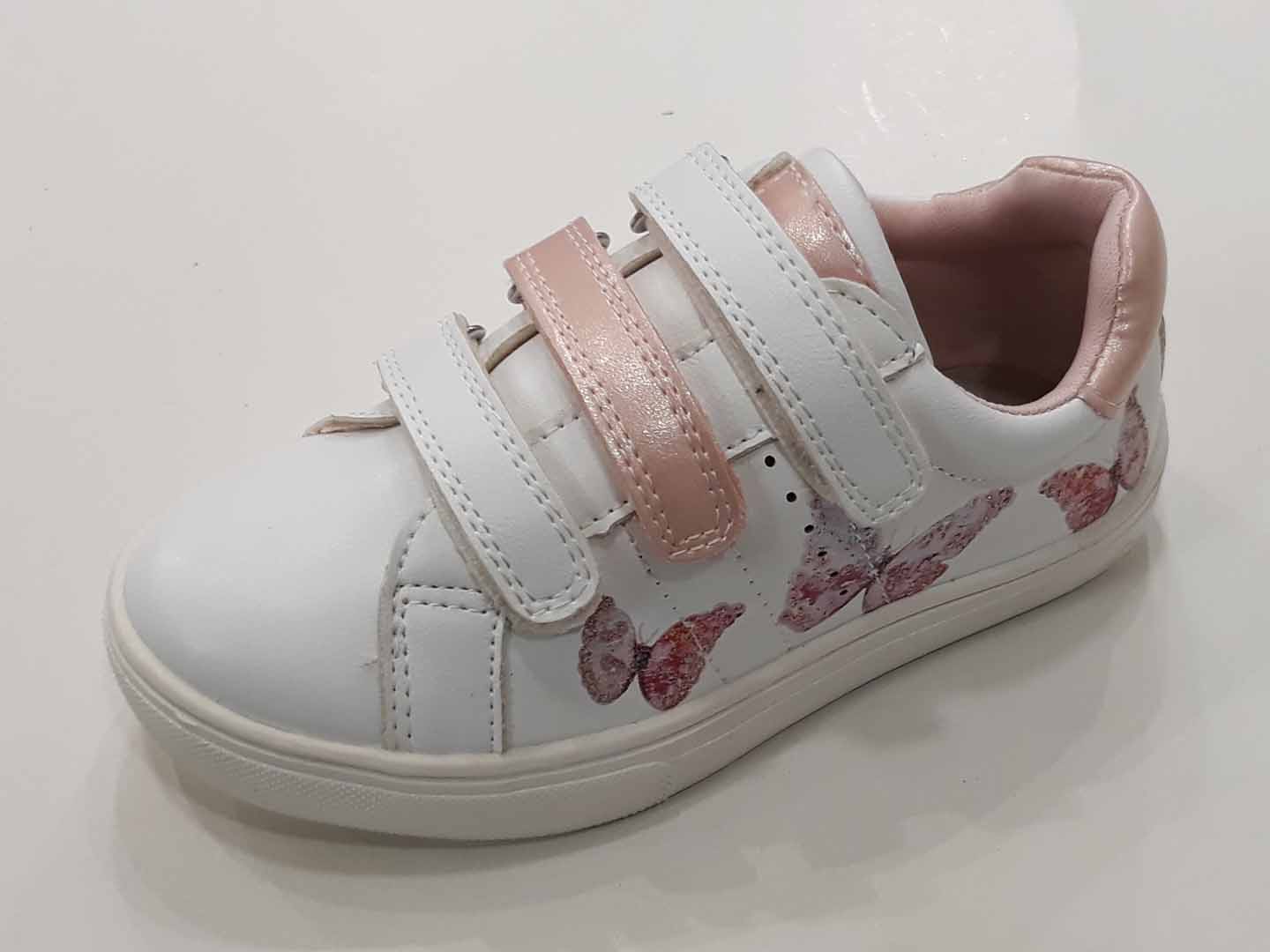 Sneaker for girls with leather anatomical midsole, decorated with butterflies